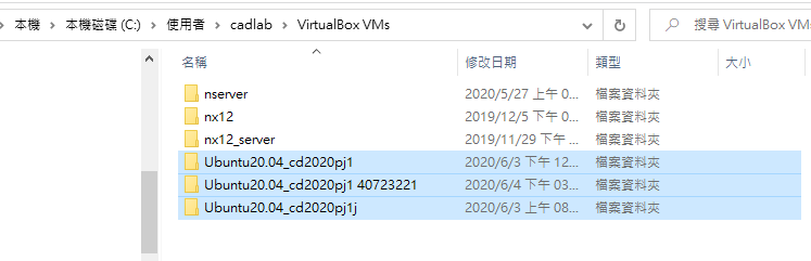 (學校)在路徑C:\Users\cadlab\VirtualBox VMs下找到為刪除的之ubnutu將其清除再次匯入即可解決。