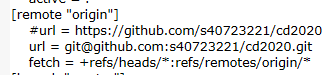 3.將從自己github中的ssh網址貼到自己資料夾中的.git下的ㄏㄟconfig中的url右方,並且將原先之url給註解掉。